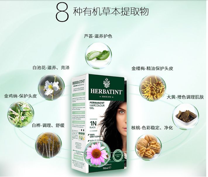Herbatint,意大利排名第一的天然植物染发剂,不含氨、酒精、苯甲酸酯、香水, 过氧化物比标准染料较少。0% ammonia 氨,0% paraben苯甲酸酯,真正有机的,完全没有异味。